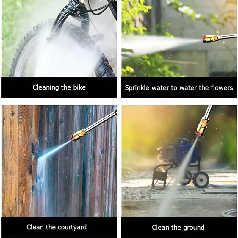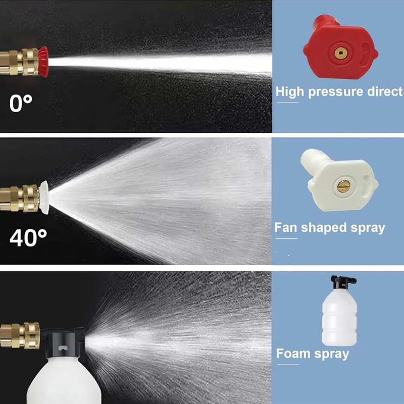 • Multiple Nozzles for Diverse Needs: It comes with various nozzles. The 0° high-pressure direct nozzle delivers a concentrated jet, ideal for tackling stubborn dirt. The 40° fan-shaped spray nozzle provides a wide coverage, perfect for general cleaning tasks. Additionally, the foam spray nozzle can generate rich foam, making it easy to clean vehicles or other surfaces thoroughly.